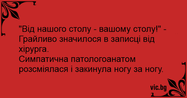 "Від нашого столу - вашому столу!" - Грайливо значилося в записці від хірурга.