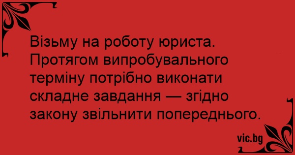 Візьму на роботу юриста. Протягом випробувального терміну потрібно виконати складне завдання — згідно закону звільнити попереднього.