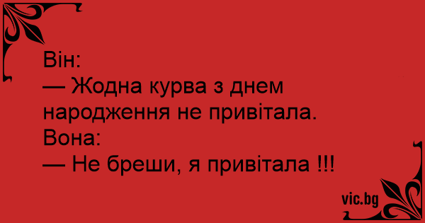 Він: - Жодна курва з днем...