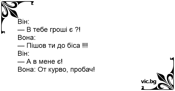 Він: - В тебе гроші є ?!...