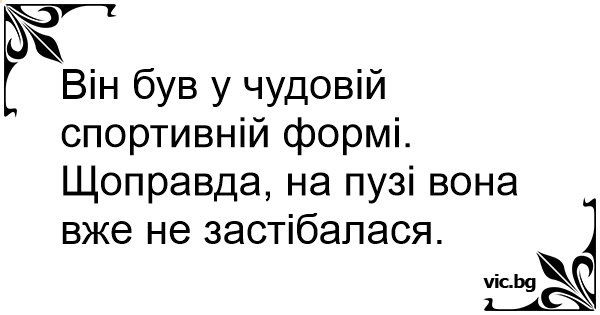 Він був у чудовій спортивній формі.<br />Щоправда, на пузі вона вже не застібалася.