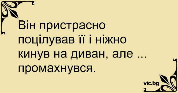 Він пристрасно поцілував її і ніжно кинув на диван, але ... промахнувся.