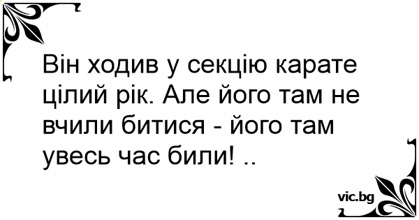 Він ходив у секцію карате цілий рік. Але його там не вчили битися - його там увесь час били! .. 0 0 0 Чорний гумор