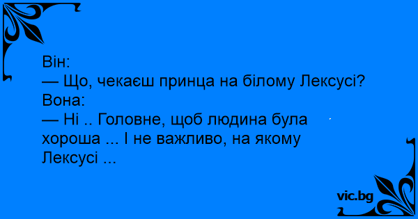 — Що, чекаєш принца на білому Лексусі?