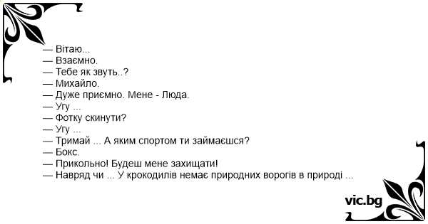 — Тримай ... А яким спортом ти займаєшся?