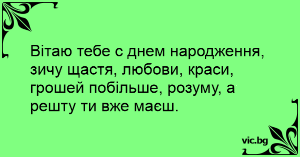 Вітаю тебе с днем народження, зичу щастя, любови, краси, грошей побільше, розуму, а решту ти вже маєш.