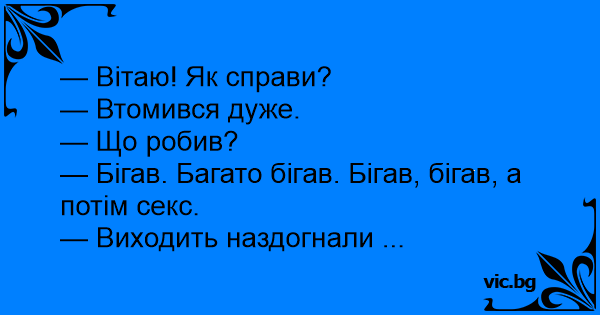 — Бігав. Багато бігав. Бігав, бігав, а потім cekc.