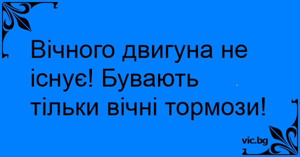 Вічного двигуна не існує! Бувають тільки вічні тормози!