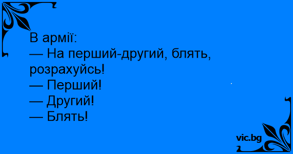 — На перший-другий, бляtь, розрахуйсь!
