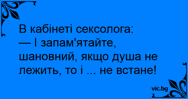 — І запам'ятайте, шановний, якщо душа не лежить, то і ... не встане!