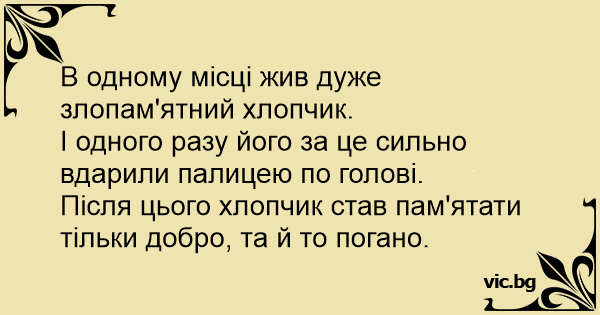 Після цього хлопчик став пам'ятати тільки добро, та й то погано.