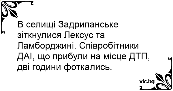 В селищі Задрипанське зіткнулися Лексус та Ламборджині. Співробітники ДАІ, що прибули на місце ДТП, дві години фоткались.