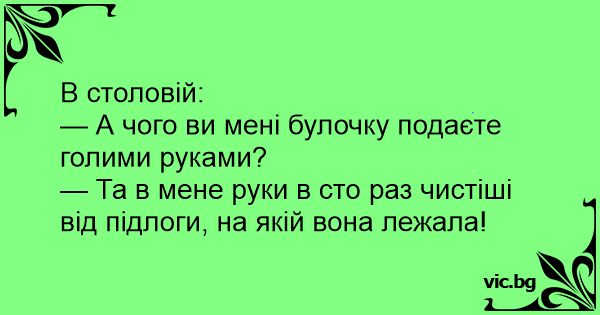 — Та в мене руки в сто раз чистіші від підлоги, на якій вона лежала!