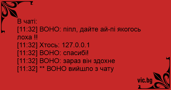 [11:32] ВОНО: піпл, дайте ай-пі якогось лоха !!
