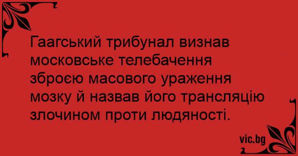Гаагський трибунал визнав московське телебачення зброєю масового ураження мозку й назвав його трансляцію злочином проти людяності.