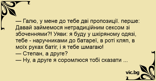 — Галю, у мене до тебе дві пропозиції. перше: