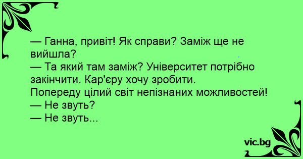 — Ганна, привіт! Як справи? Заміж ще не вийшла?