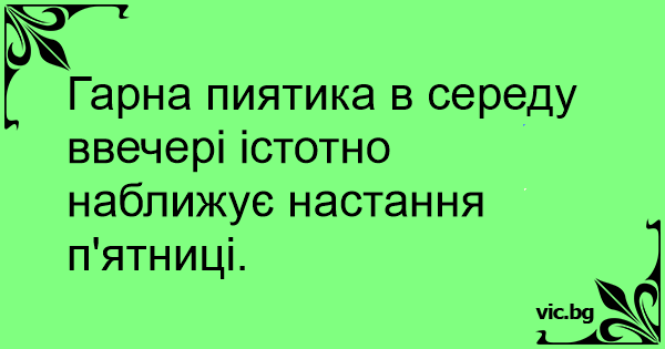 Гарна пиятика в середу ввечері істотно наближує настання п'ятниці.