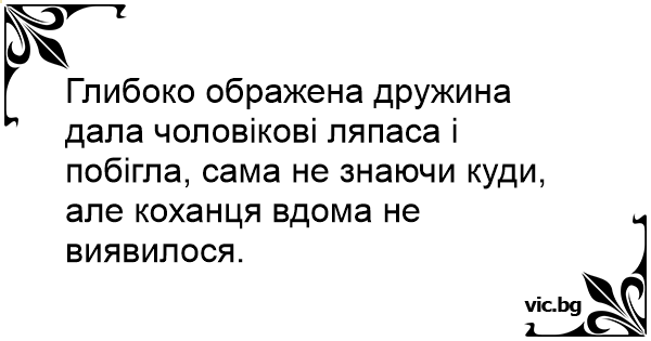 Глибоко ображена дружина дала чоловікові ляпаса і побігла, сама не знаючи куди, але коханця вдома не виявилося.