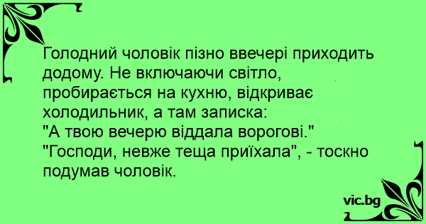 "Господи, невже теща приїхала", - тоскно подумав чоловік.