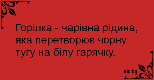 Горілка - чарівна рідина, яка перетворює чорну тугу на білу гарячку.