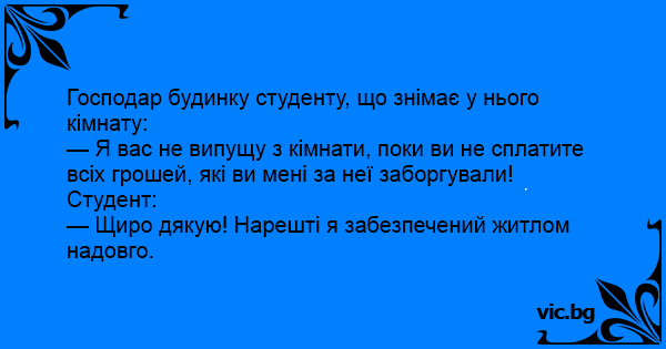 — Я вас не випущу з кімнати, поки ви не сплатите всіх грошей, які ви мені за неї заборгували!