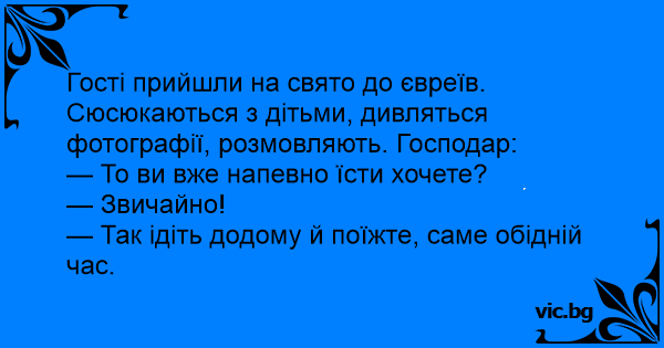 Гості прийшли на свято до євреїв. Сюсюкаються з дітьми, дивляться фотографії, розмовляють. Господар: