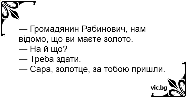 — Громадянин Рабинович, нам відомо, що ви маєте золото.