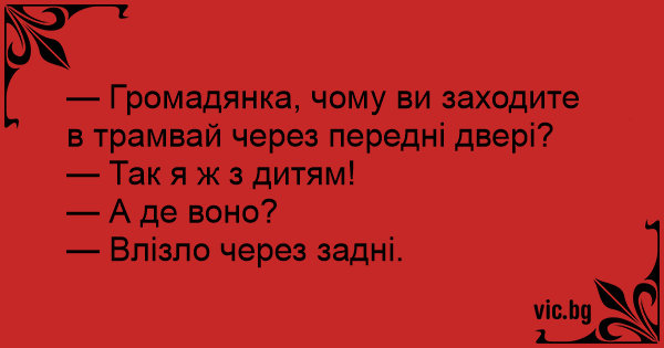 — Громадянка, чому ви заходите в трамвай через передні двері?