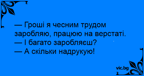 — Гроші я чесним трудом заробляю, працюю на верстаті.