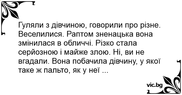 Гуляли з дівчиною, говорили про різне. Веселилися. Раптом зненацька вона змінилася в обличчі. Різко стала серйозною і майже злою. Ні, ви не вгадали. Вона побачила дівчину, у якої таке ж пальто, як у неї ...