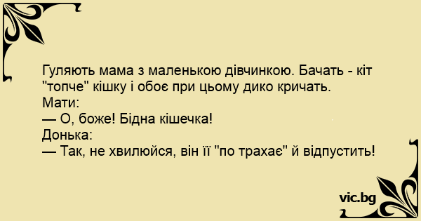 — Так, не хвилюйся, він її "по трахає" й відпустить!
