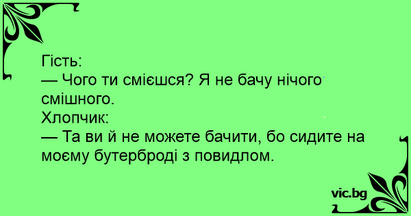 — Чого ти смієшся? Я не бачу нічого смішного.
