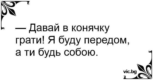 — Давай в конячку грати! Я буду передом, а ти будь собою.