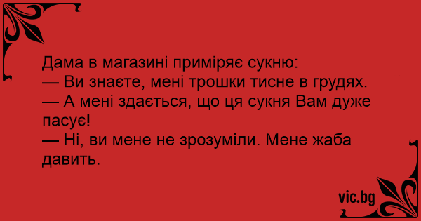 — Ні, ви мене не зрозуміли. Мене жаба давить.
