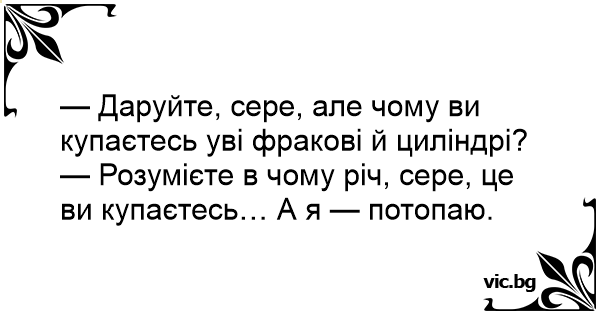 — Розумієте в чому річ, сере, це ви купаєтесь… А я — потопаю.