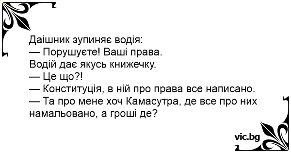 — Та про мене хоч Камасутра, де все про них намальовано, а гроші де?