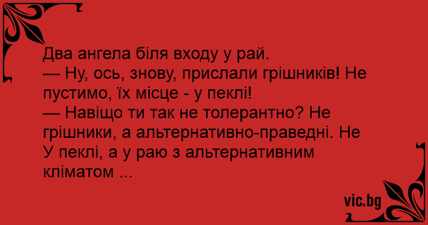 — Навіщо ти так не толерантно? Не грішники, а альтернативно-праведні. Не