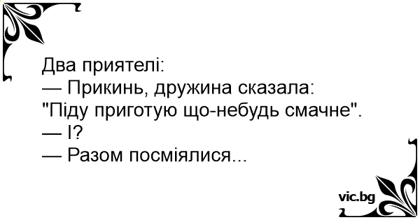 — Прикинь, дружина сказала: