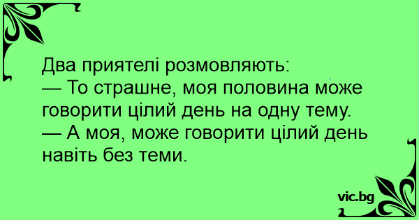 — То страшне, моя половина може говорити цілий день на одну тему.