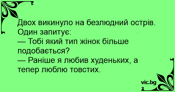 — Раніше я любив худеньких, а тепер люблю товстих.