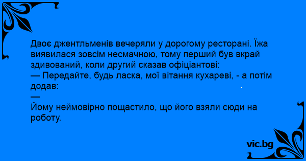 — Передайте, будь ласка, мої вітання кухареві, - а потім додав: