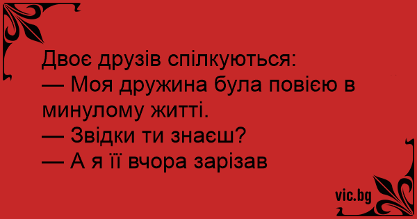 — Моя дружина була повією в минулому житті.