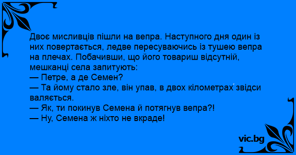 — Як, ти покинув Семена й потягнув вепра?!