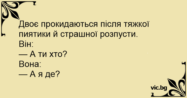 Двоє прокидаються після тяжкої пиятики й страшної розпусти.