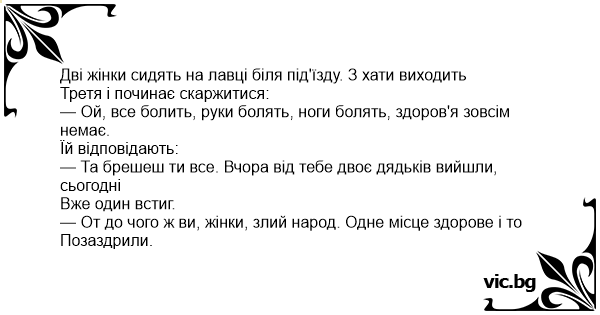 — От до чого ж ви, жінки, злий народ. Одне місце здорове і то