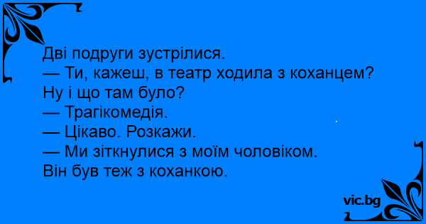 — Ти, кажеш, в театр ходила з коханцем? Ну і що там було?