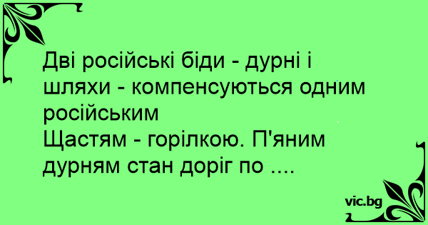 Щастям - горілкою. П'яним дурням стан доріг по ....