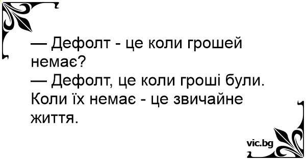 — Дефолт, це коли гроші були. Коли їх немає - це звичайне життя.