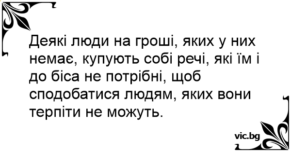 Деякі люди на гроші, яких у них немає, купують собі речі, які їм і до біса не потрібні, щоб сподобатися людям, яких вони терпіти не можуть.